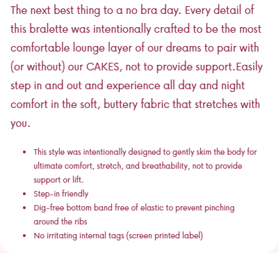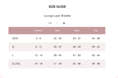 Lounge Layer Bralette Size Chart