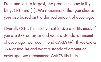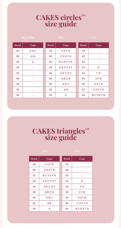 CAKES Size Chart